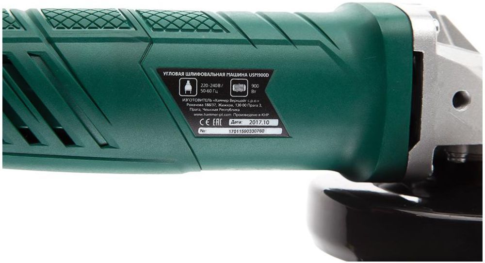 Углошлифовальная машина Hammer USM900D 900Вт 12000об/мин рез.шпин.:M14 d=125мм (501521)