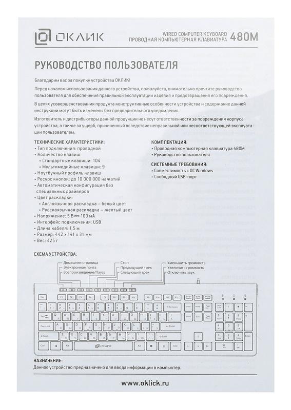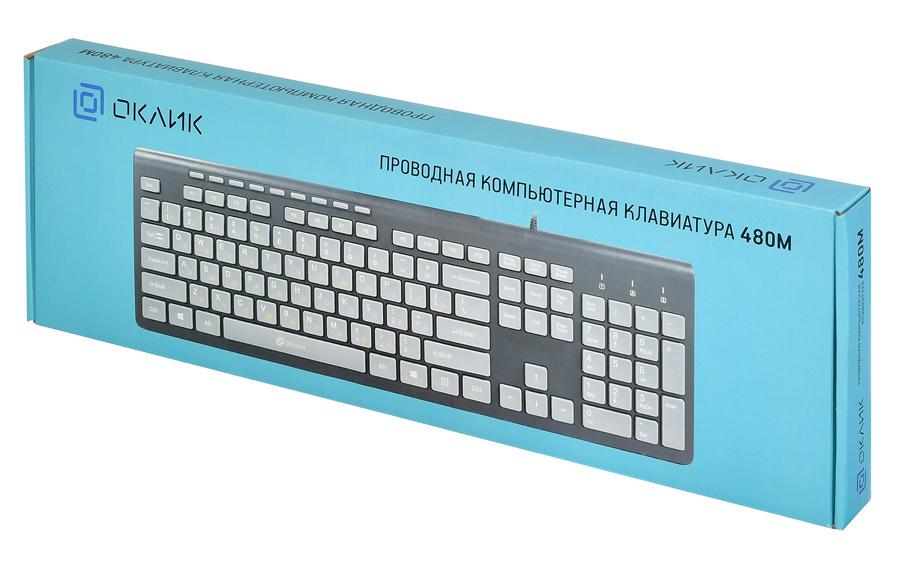 Клавиатура Оклик 480M черный/серый USB slim Multimedia (1067199) кабель 1.5м