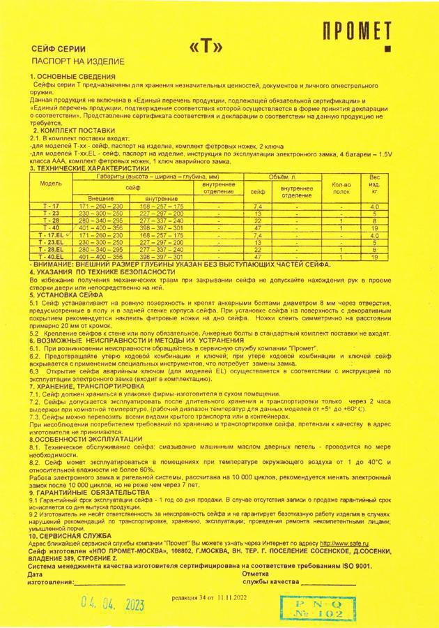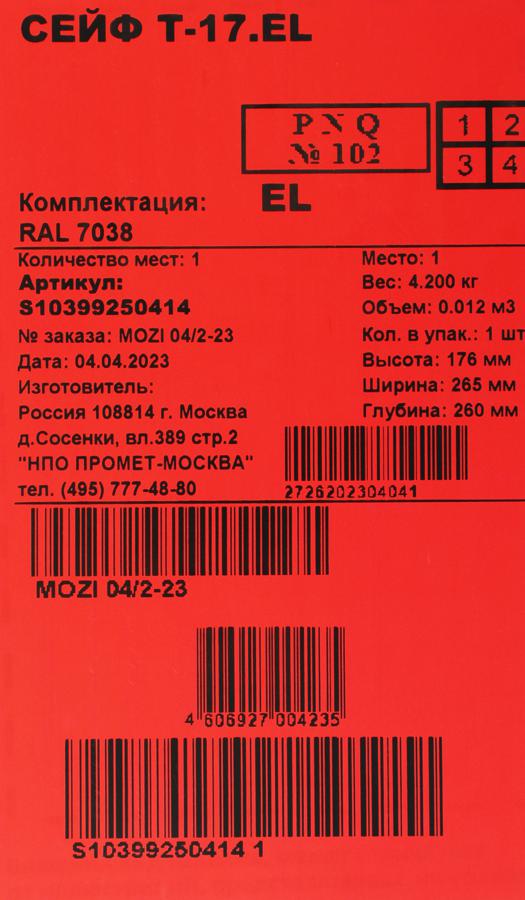 Сейф мебельный Aiko T 17 EL 171x260x230мм электронный (S10399250414)