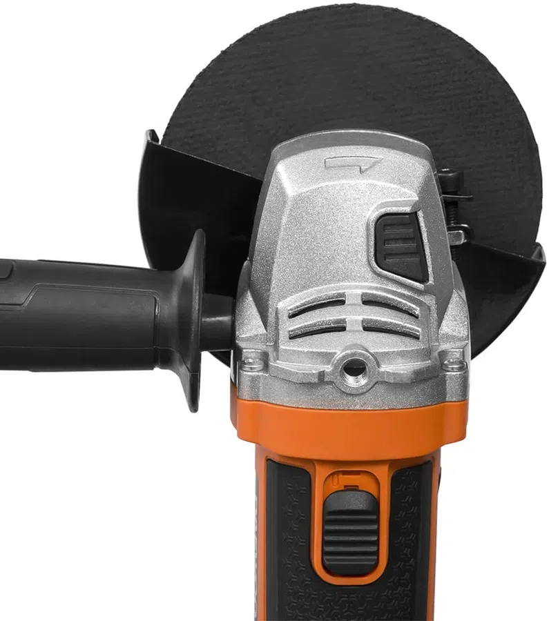| Особенности | Усиленный редуктор из магниевого сплава. Блокировка шпинделя – для простоты замены диска. Трехпозиционная рукоятка. Изменение положения основной рукоятки. Плавный пуск. Угольные щетки. Защитный кожух. |