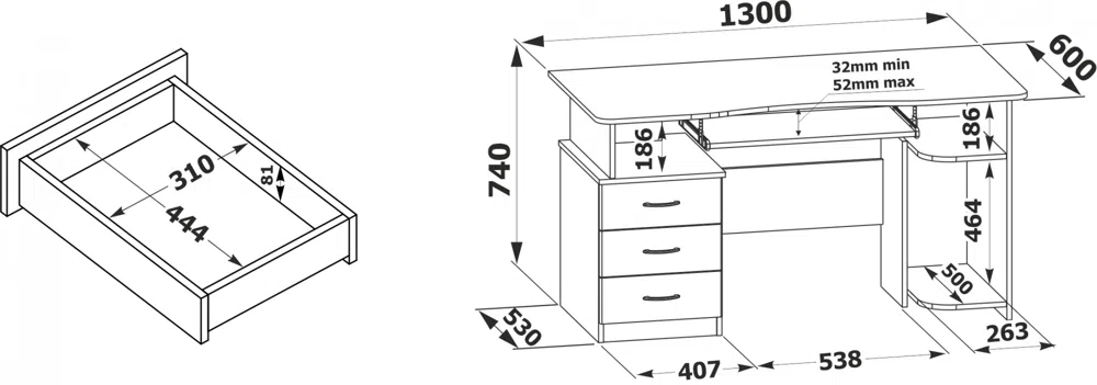 | Дополнительные полки | тумба с тремя ящиками |