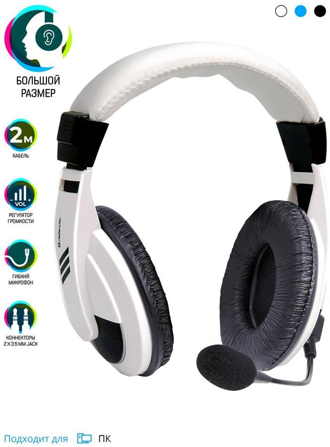 Наушники с микрофоном Defender Gryphon HN-750 белый/черный 2м накладные оголовье (63747)