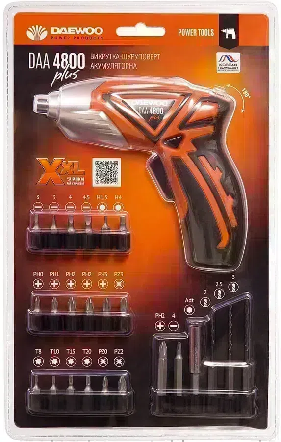 | Комплект поставки | аккумуляторная отвертка-шуруповерт, зарядное устройство,Биты и сверла - 24 шт., руководство пользователя,гарантийный талон, упаковка |