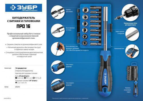 Отвертка Зубр Профессионал 25216 в компл.:16 предметов жесткий кейс