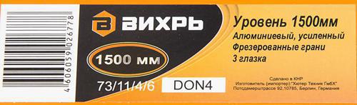 | Описание | Уровень алюминиевый 1500 мм фрезерованный 3 глазка. Измеряемые поверхности 180/90/45 градусов. |