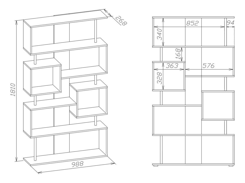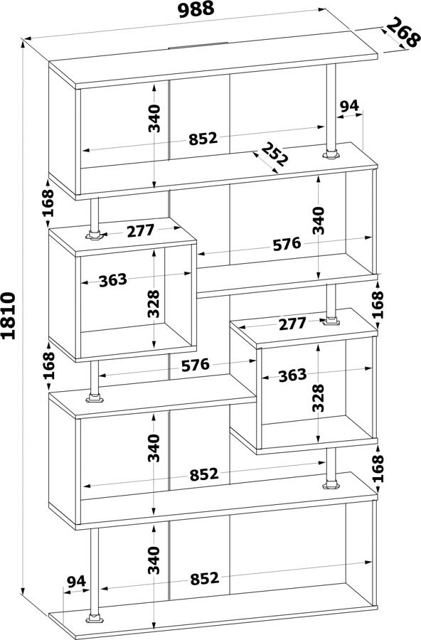 | Особенности | Открытый многофункциональный стеллаж, сделанный в необычной геометрии полок, которые будто парят в воздухе благодаря металлическим элементами между ними. Он станет полезной частью гостиной, спальни, детской комнаты, квартиры-студии или офисных помещений. |