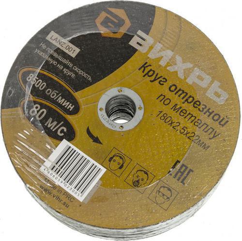 Диск отрезной по мет. Вихрь 73/1/3/37 d=180мм d(посад.)=22.2мм (угловые шлифмашины) (упак.:25шт)