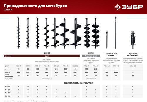 | Описание | Шнек является сменным элементом для мотобуров ЗУБР. Он представляет собой винтообразный бур, который широко применяют для бурения скважин бытового назначения. Например, с его помощью можно бурить скважины для установки столбов. Винтовая форма шнека быстро проникает сквозь грунт. Диаметр:250мм |