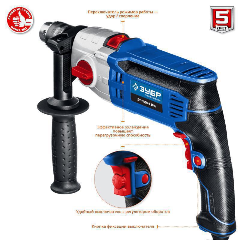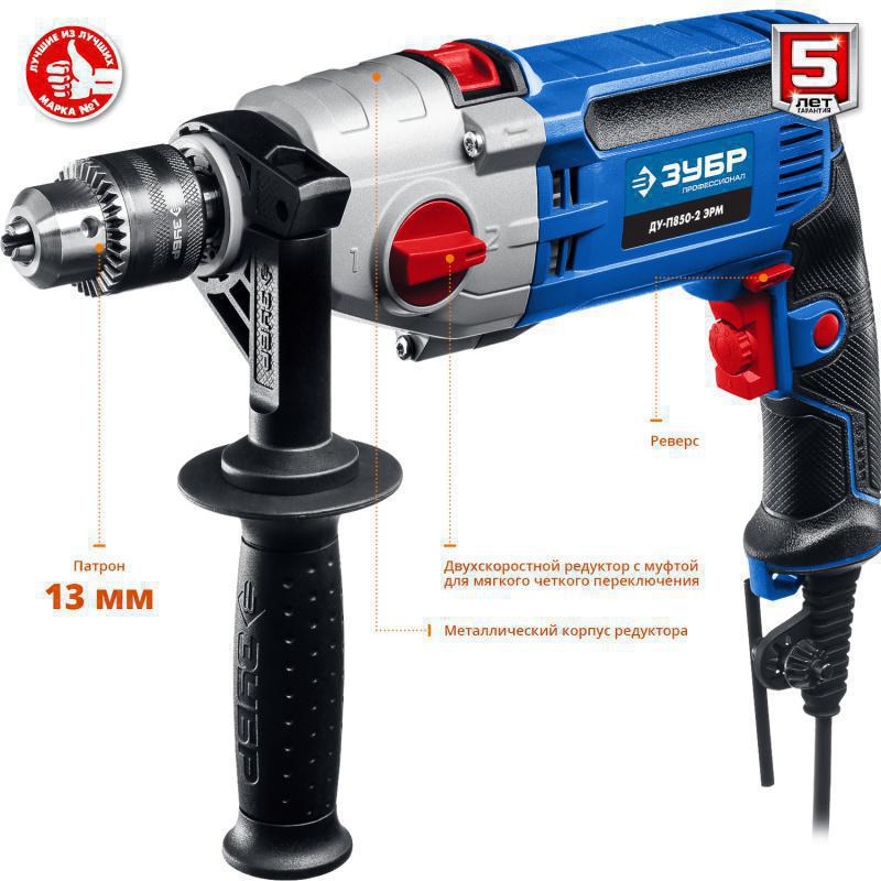 Дрель ударная Зубр ДУ-П850-2 ЭРМ 850Вт ключевой реверс