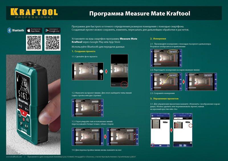 Лазерный дальномер Kraftool LD-100 2кл.лаз. 650нм цв.луч. красный в кейсе (34765)