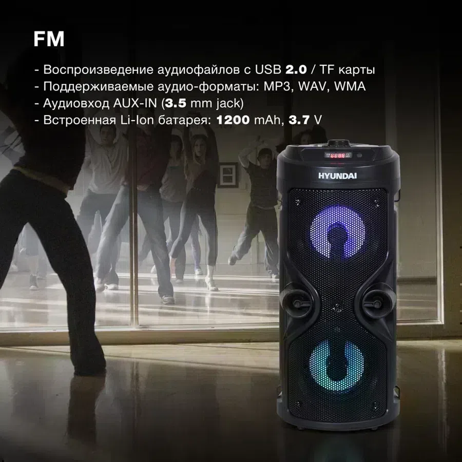 | Особенности | LED дисплей, подсветка динамиков, встроенный аккумулятор 1200mAh, Bluetooth v5.0, поддержка TF карт до 32GB |