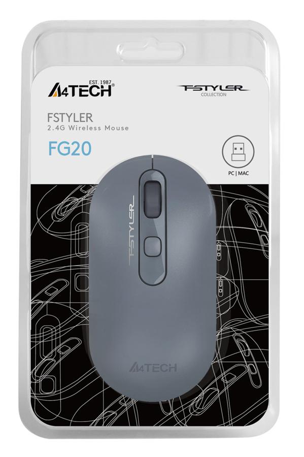 Мышь A4Tech Fstyler FG20 пепельный/синий оптическая 2000dpi беспров. USB для ноутбука 4but (FG20 ASH BLUE)