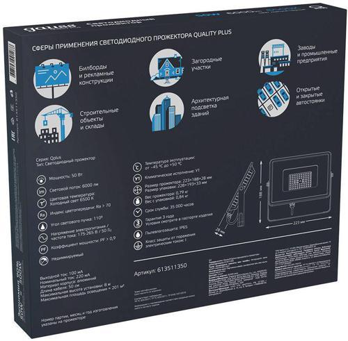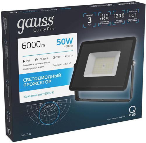 Прожектор уличный Gauss Qplus 613511350 светодиодный 50Втчерный