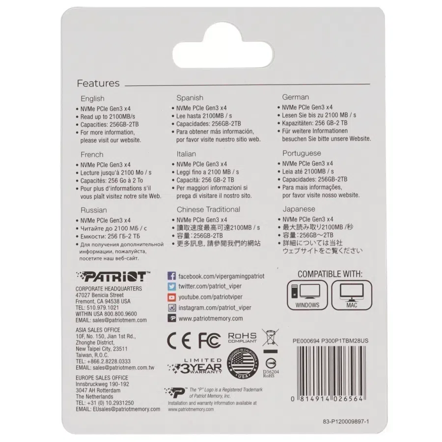 Накопитель SSD Patriot PCIe 3.0 x4 1TB P300P1TBM28 P300 M.2 2280 2100/1650