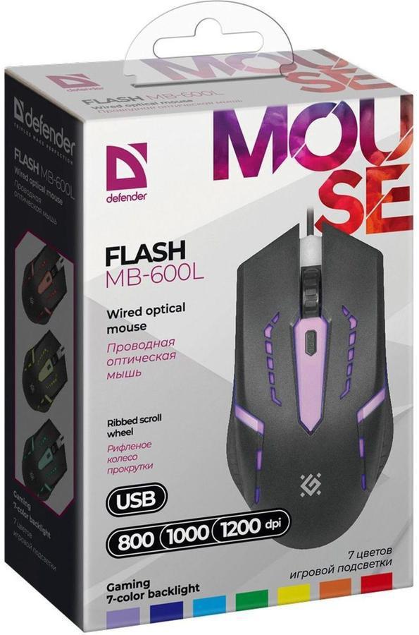 Мышь Defender Flash MB-600L черный оптическая 1200dpi USB 3but (52600)