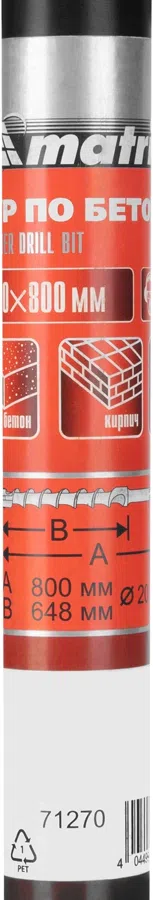 Бур Matrix 71270 по бетону Д=20мм Дл=800мм (1пред.) для перфораторов