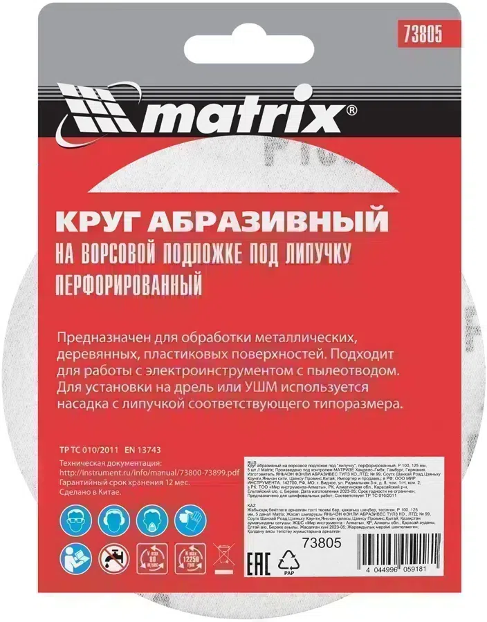 Диск абразивный Matrix 73805 d=125мм (угловые шлифмашины) (упак.:5шт)