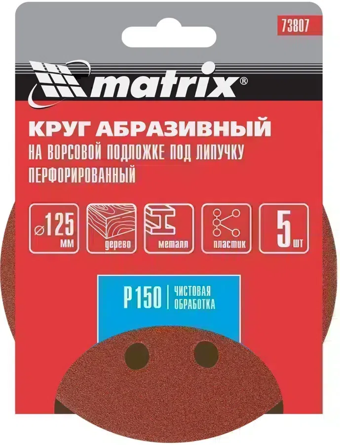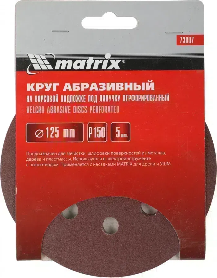 Диск абразивный Matrix 73807 d=125мм (шлифовальные машины/дрели) (упак.:5шт)