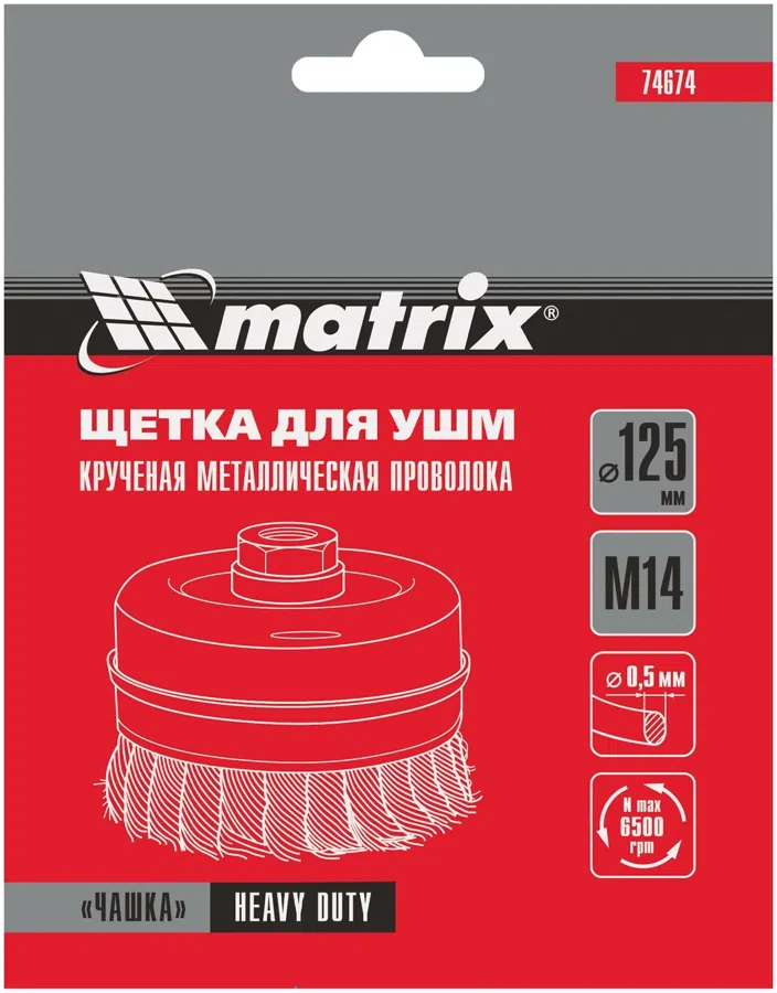 Щетка дисковая по мет. Matrix 74674 d=125мм d(посад.)=14мм (угловые шлифмашины) (упак.:1шт)
