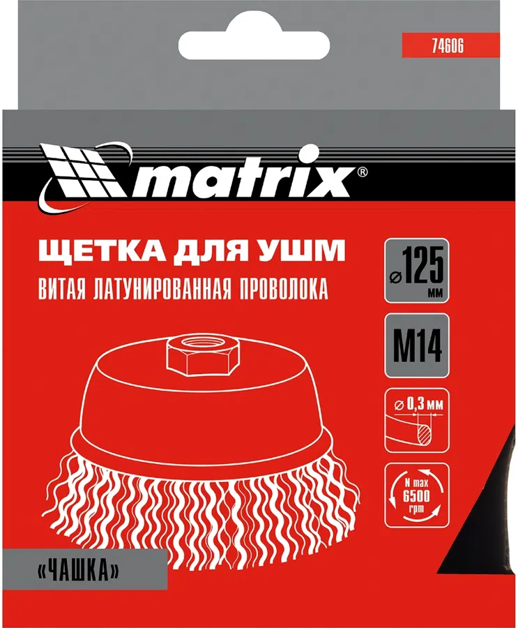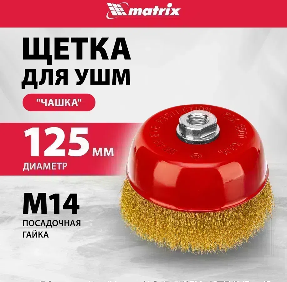 Щетка дисковая по мет. Matrix 74606 d=125мм d(посад.)=14мм (угловые шлифмашины) (упак.:1шт)