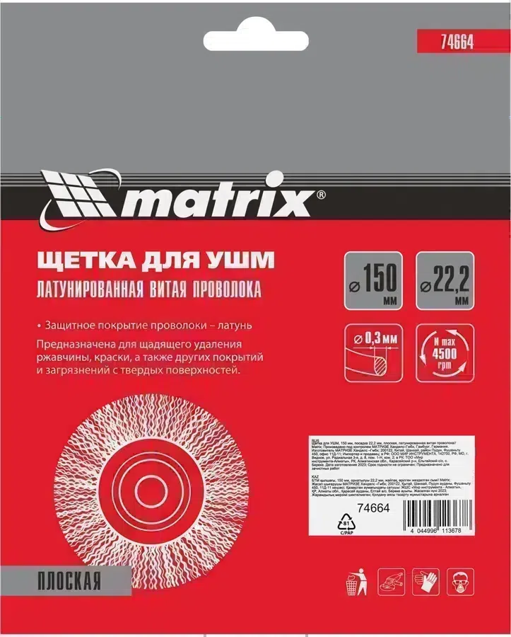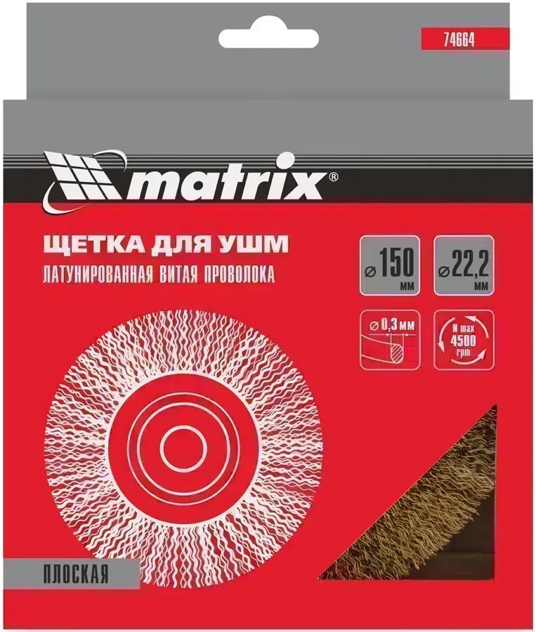 Щетка дисковая по мет. Matrix 74664 d=150мм d(посад.)=22.2мм (угловые шлифмашины) (упак.:1шт)
