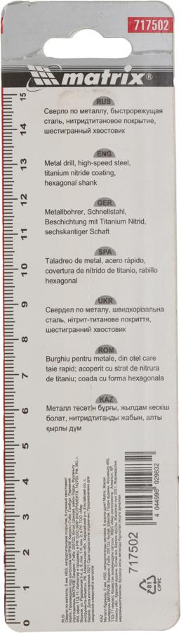 Сверло Matrix 717502 по металлу Д=5мм Дл=106мм (1пред.) для дрелей