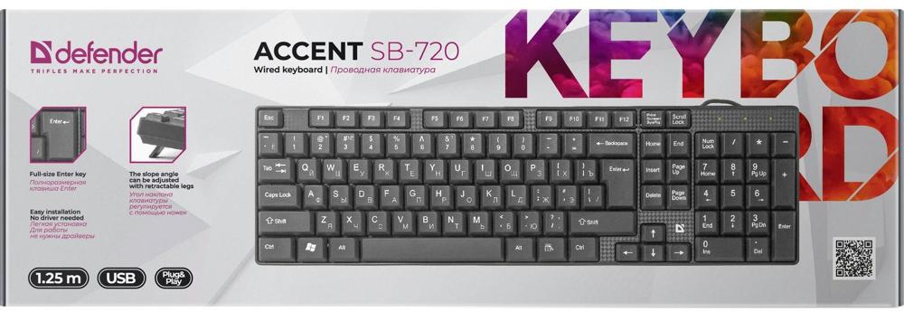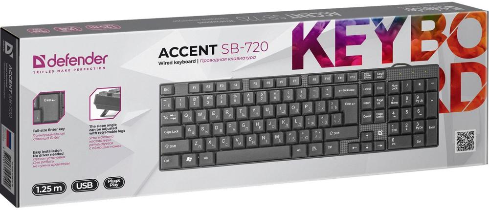 Клавиатура Defender Accent SB-720 черный USB slim (45720)