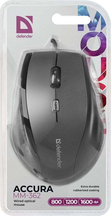 Мышь Defender Accura MM-362 черный оптическая 1600dpi USB 5but (52362)