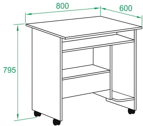 | Особенности | Компактный компьютерный стол на колесиках подойдет для работы как за ноутбуком, так и за полноценным компьютером. На внутренних полочках можно удобно расположить системный блок и даже небольшой принтер. |