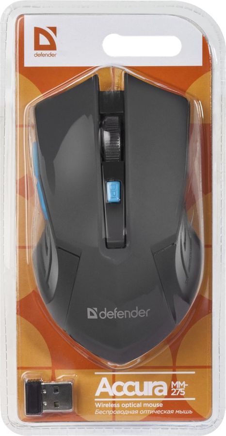 Мышь Defender Accura MM-275 черный/синий оптическая 1600dpi беспров. USB 5but (52275)