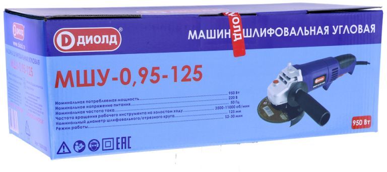 Углошлифовальная машина Диолд МШУ-0,95 -125 950Вт 11000об/мин рез.шпин.:M22 d=125мм (10041050)