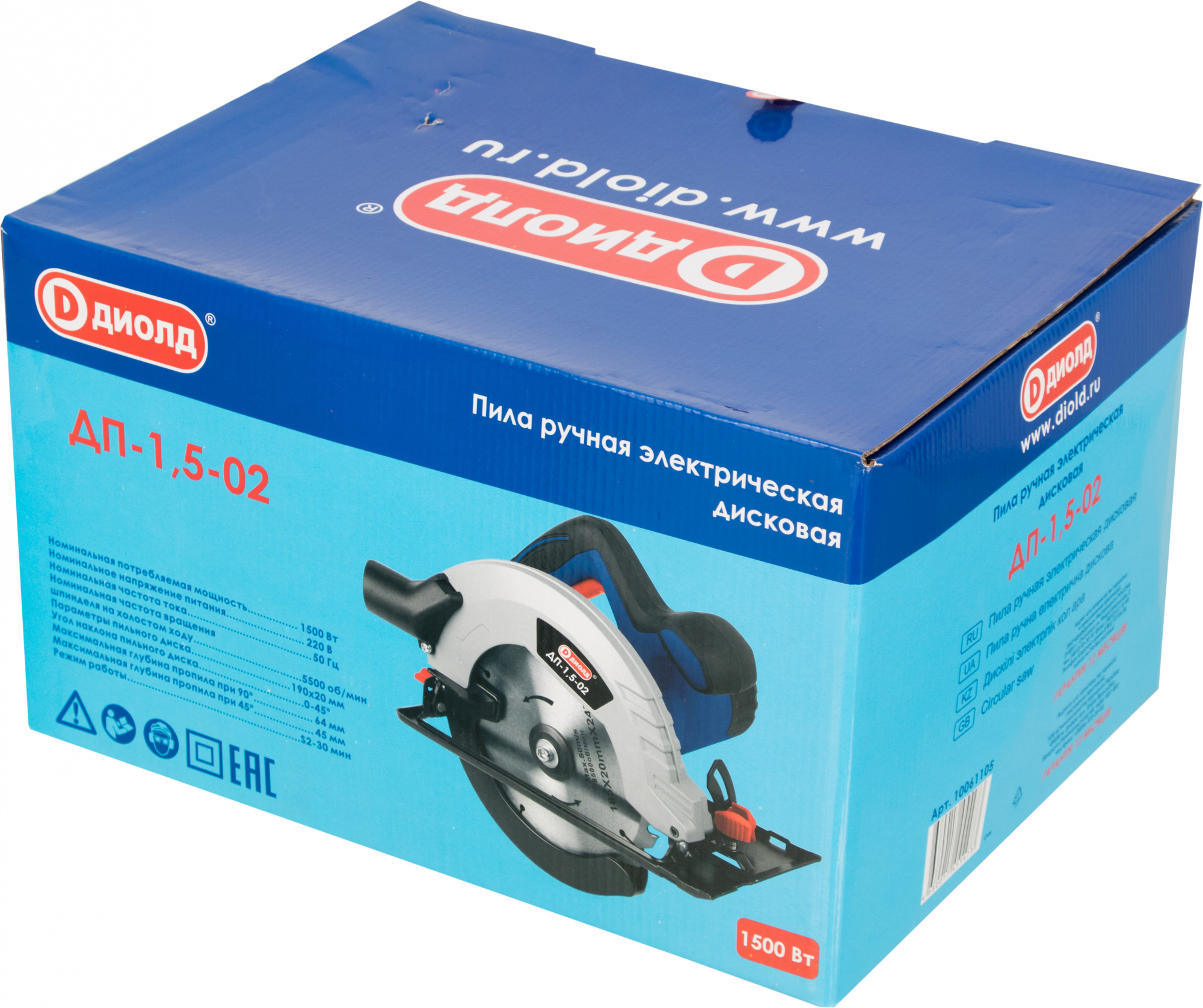 Циркулярная пила (дисковая) Диолд ДП-1,5-02 1500Вт (ручная) D диска.:190мм (10061105)