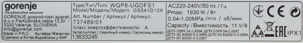 Посудомоечная машина Gorenje GS541D10X (Инвертор-3) нержавеющая сталь (узкая) инвертор