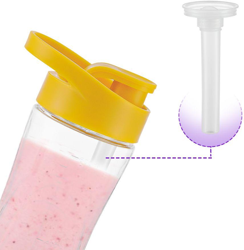 | Особенности | Чаша блендера ёмкостью 1 л, бутылка Shake&Take 600 мл и чаша кофемолки 150 мл выполнены из прочного пластика. В крышке блендера есть отверстие для добавления ингредиентов во время работы. Устройство легко разбирается и позволяет тщательно промывать детали |