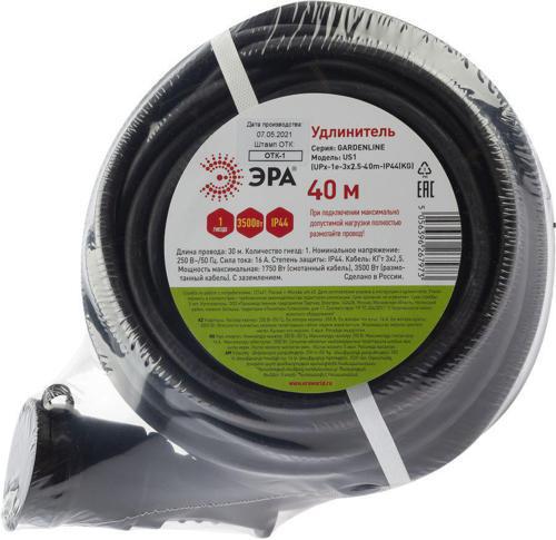 Удлинитель силовой Эра UPx-1e-3x2,5-40m-IP44(KG) (Б0050865) 3x2.5кв.мм 1розет. 40м КГ 16A без катушки черный