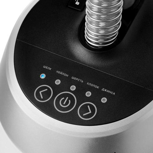 | Особенности | У отпаривателя есть 5 режимов подачи пара для различных типов тканей, которые устанавливаются кнопками «Больше» или «Меньше»: шелк, нейлон, шерсть, хлопок и джинса. |