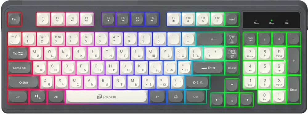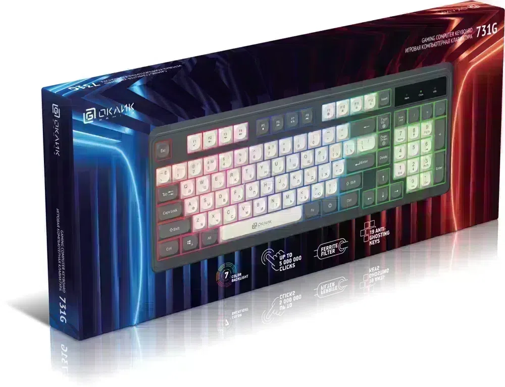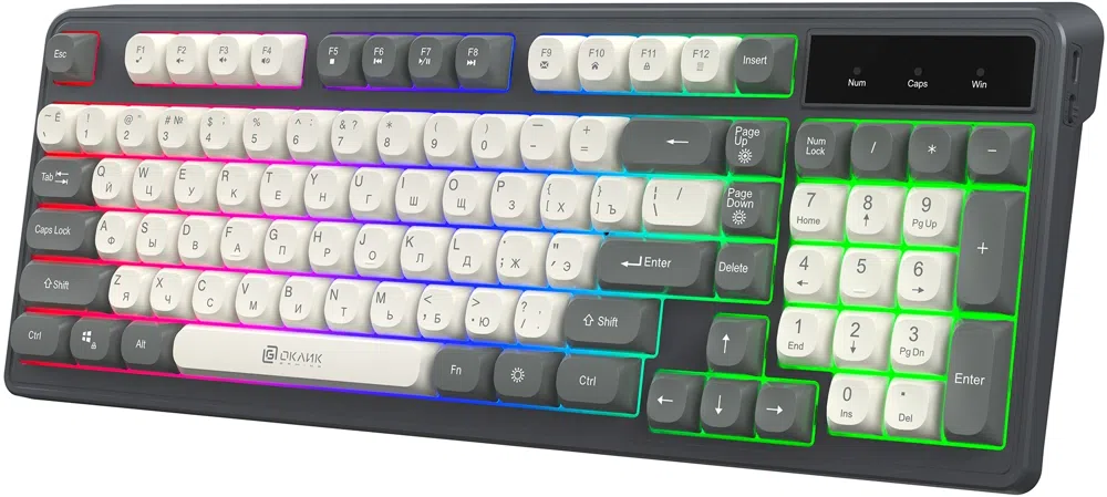 Клавиатура Оклик 731G серый/белый USB Multimedia for gamer LED кабель 1.5м