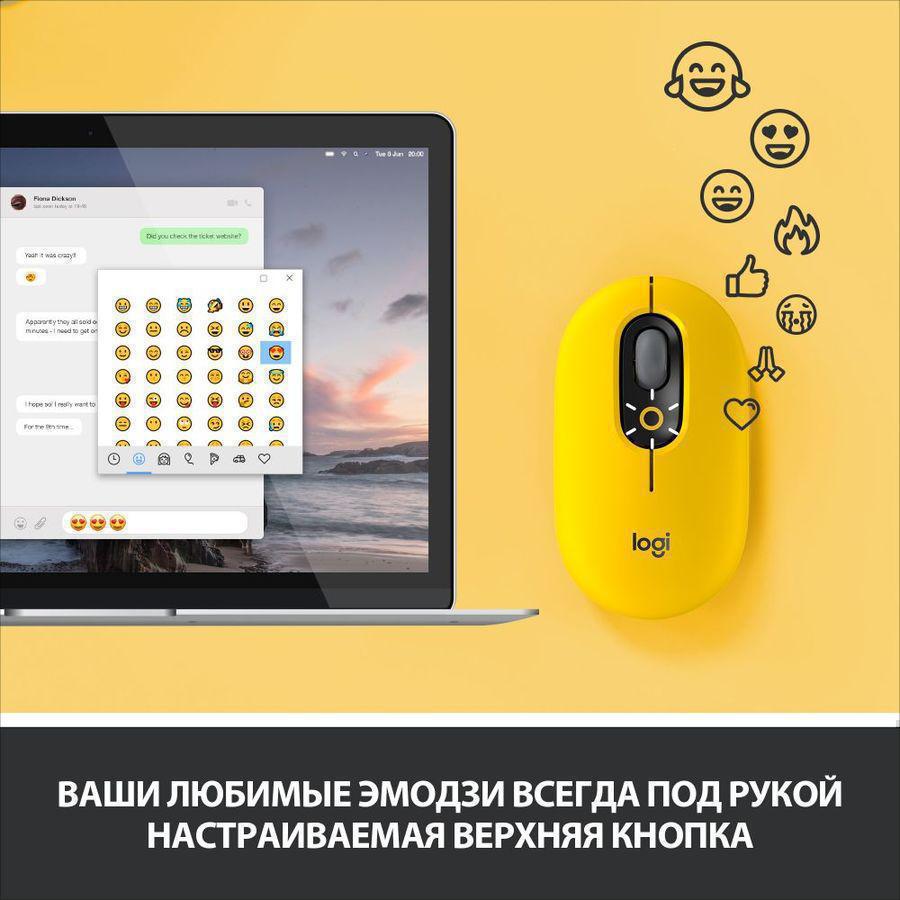 Мышь Logitech POP Mouse with emoji желтый/черный оптическая 4000dpi беспров. BT/Radio USB 4but (910-006546)