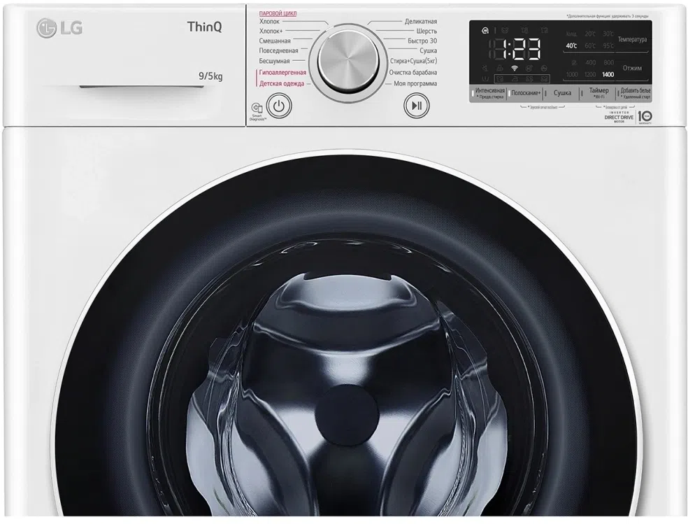 Стиральная машина LG F4V5VG0W класс: A загр.фронтальная макс.:9кг (с сушкой) белый инвертор