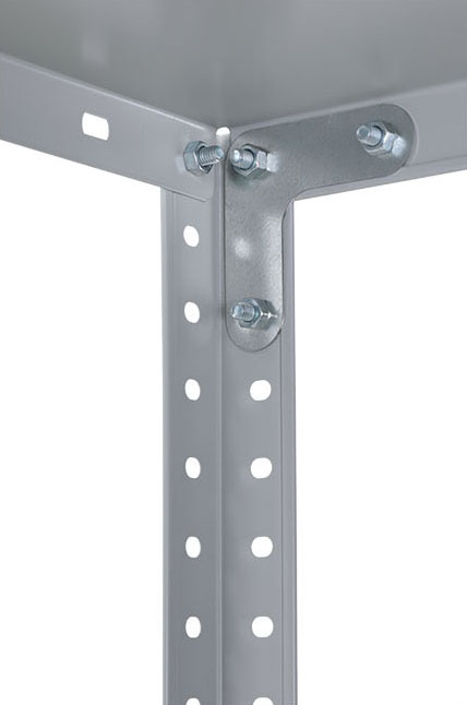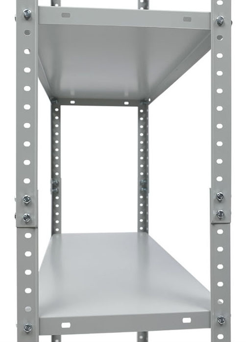 | Особенности | Предназначен для хранения различных грузов дома, в офисах, гаражах, подсобках, а также на небольших складах. Все элементы стеллажа покрашены в серый цвет (RAL 7038). Быстрая, легкая сборка. Соединения стойки и полки при помощи болтов с гайками |