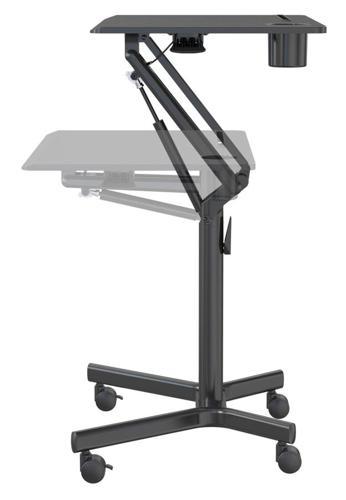 | Особенности | Подъемный механизм плавно опускает и поднимает столешницу, можно остановить в любом положении. Управление при помощи одного рычага. Наличие 4 колес обеспечивает маневренность, 2 колеса со стопором, для придания устойчивости. |