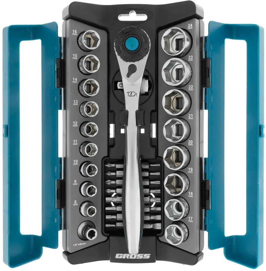 Набор торцевых головок Gross 14144 в комплекте 36 предметов +жесткий кейс