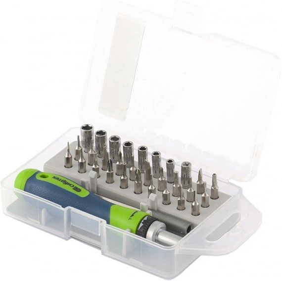 | Описание | реверсивная для точных работ с набором бит и торцевых головок, 32 предмета, CrV |