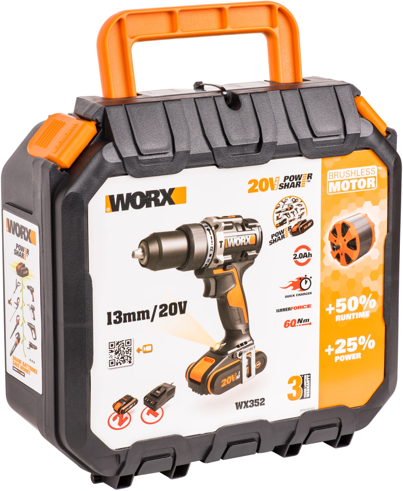 | Комплект поставки | Ударная дрель-шуруповерт WORX WX3522. Аккумулятор Li-Ion емкостью 2 А*ч. Зарядное устройство WORX 20 В 2A. Крюк для крепления на поясе. Двусторонняя бита. Кейс для переноски. Инструкция. |