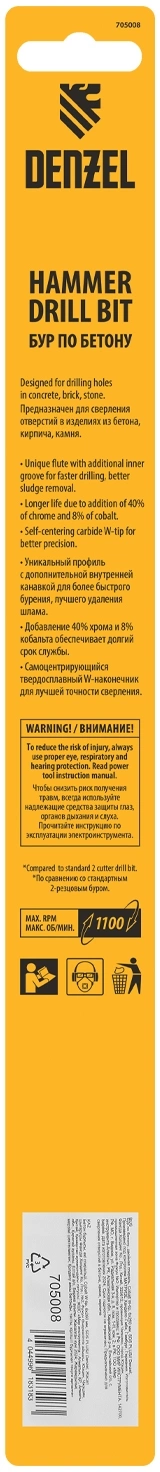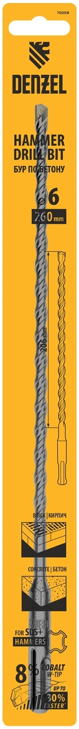 Бур Denzel 705008 по бетону Д=6мм Дл=260мм (1пред.) для перфораторов