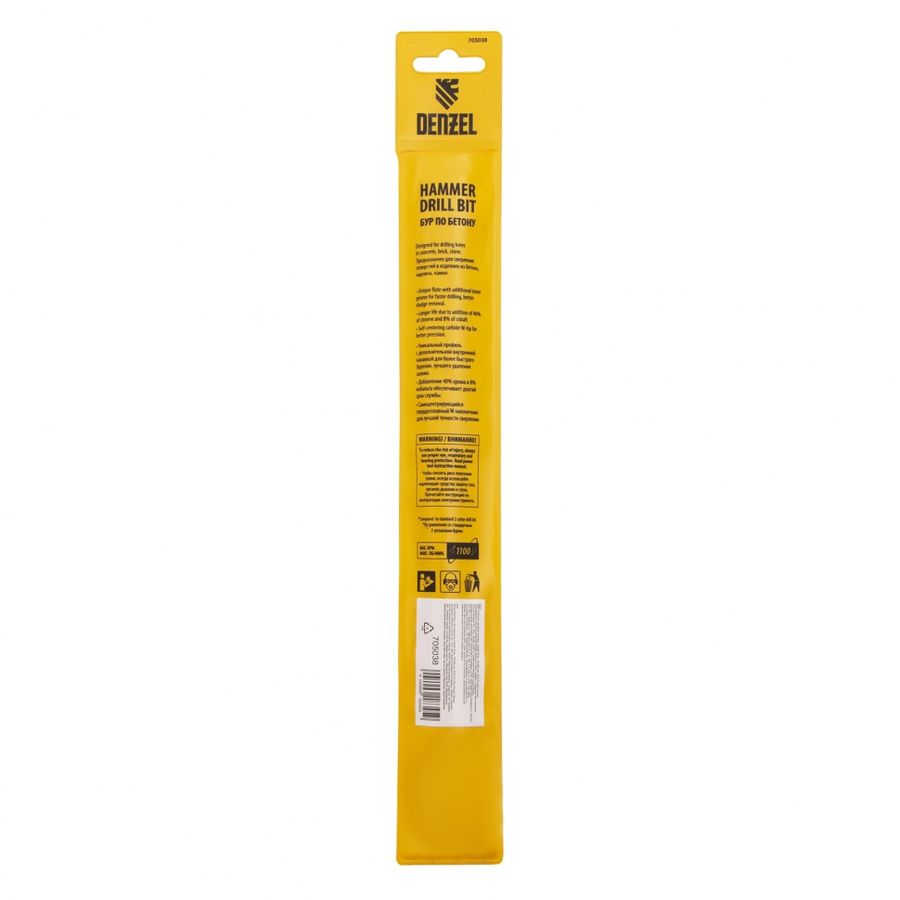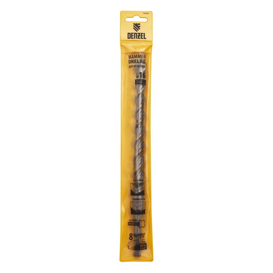 Бур Denzel 705038 по бетону Д=16мм Дл=260мм (1пред.) для перфораторов