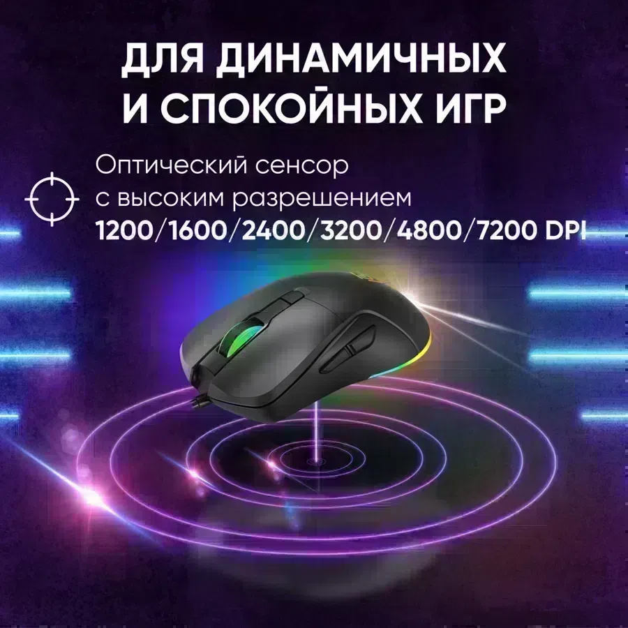 Мышь Оклик 750G черный оптическая 7200dpi USB 5but (1796789)
