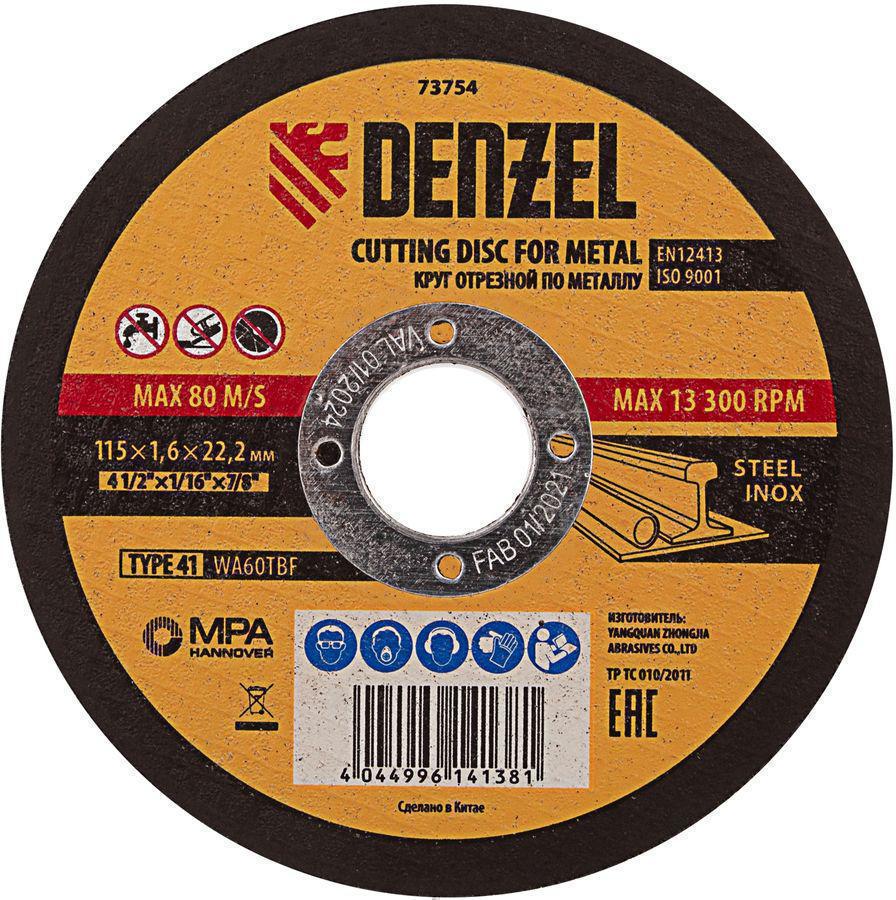 Диск отрезной по мет. Denzel 73754 d=115мм d(посад.)=22.2мм (угловые шлифмашины) (упак.:1шт)