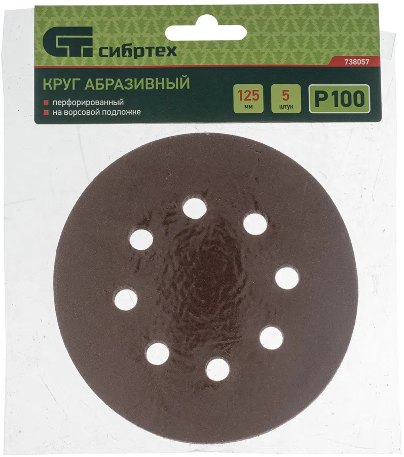 Диск абразивный по алюм./дер./плас. Сибртех 738057 d=125мм (эксцентриковые шлифмашины) (упак.:5шт)