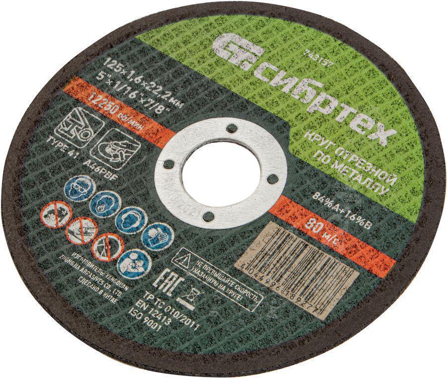 Диск отрезной по мет. Сибртех 743157 d=125мм d(посад.)=22.2мм (угловые шлифмашины) (упак.:1шт)